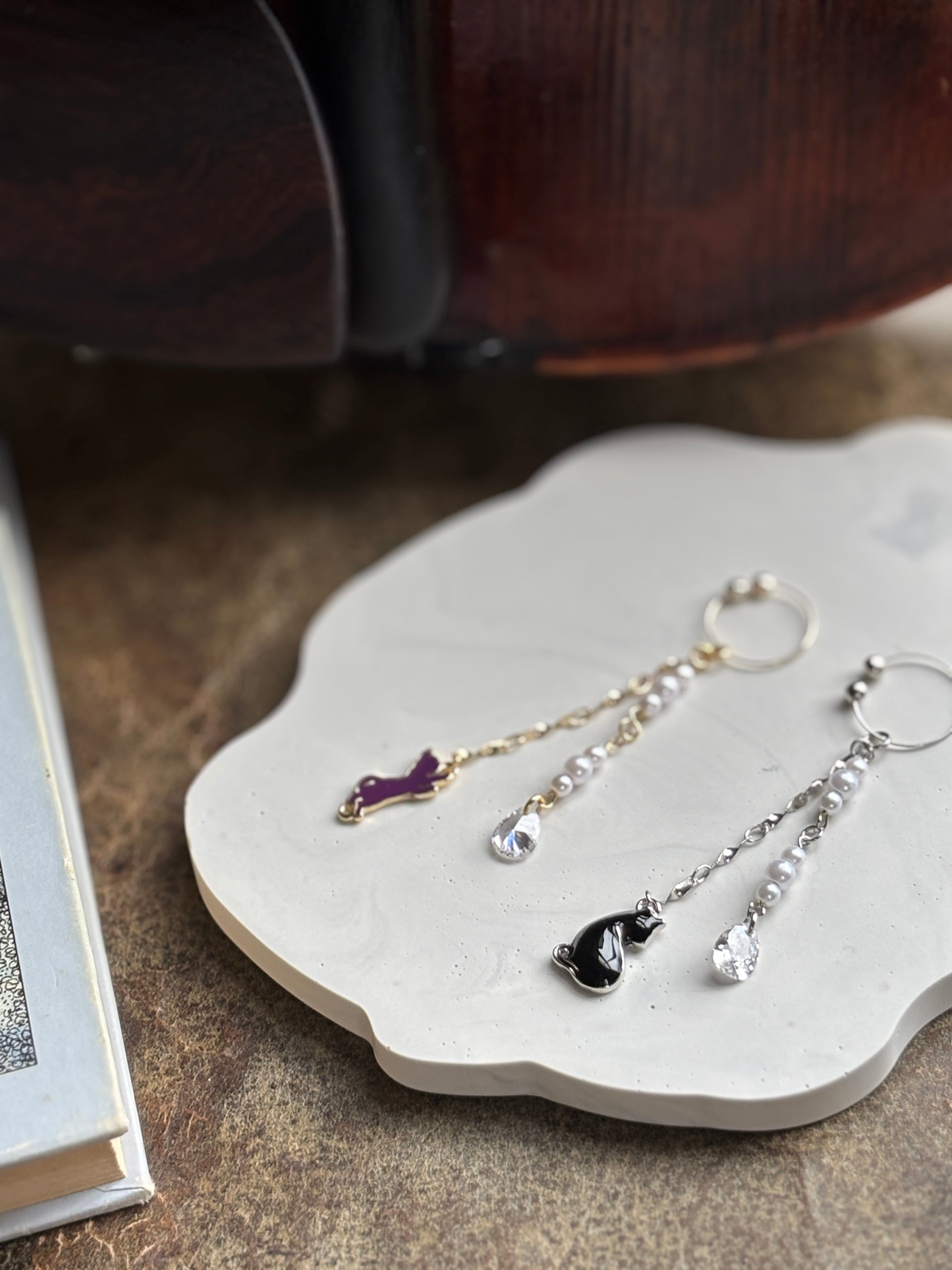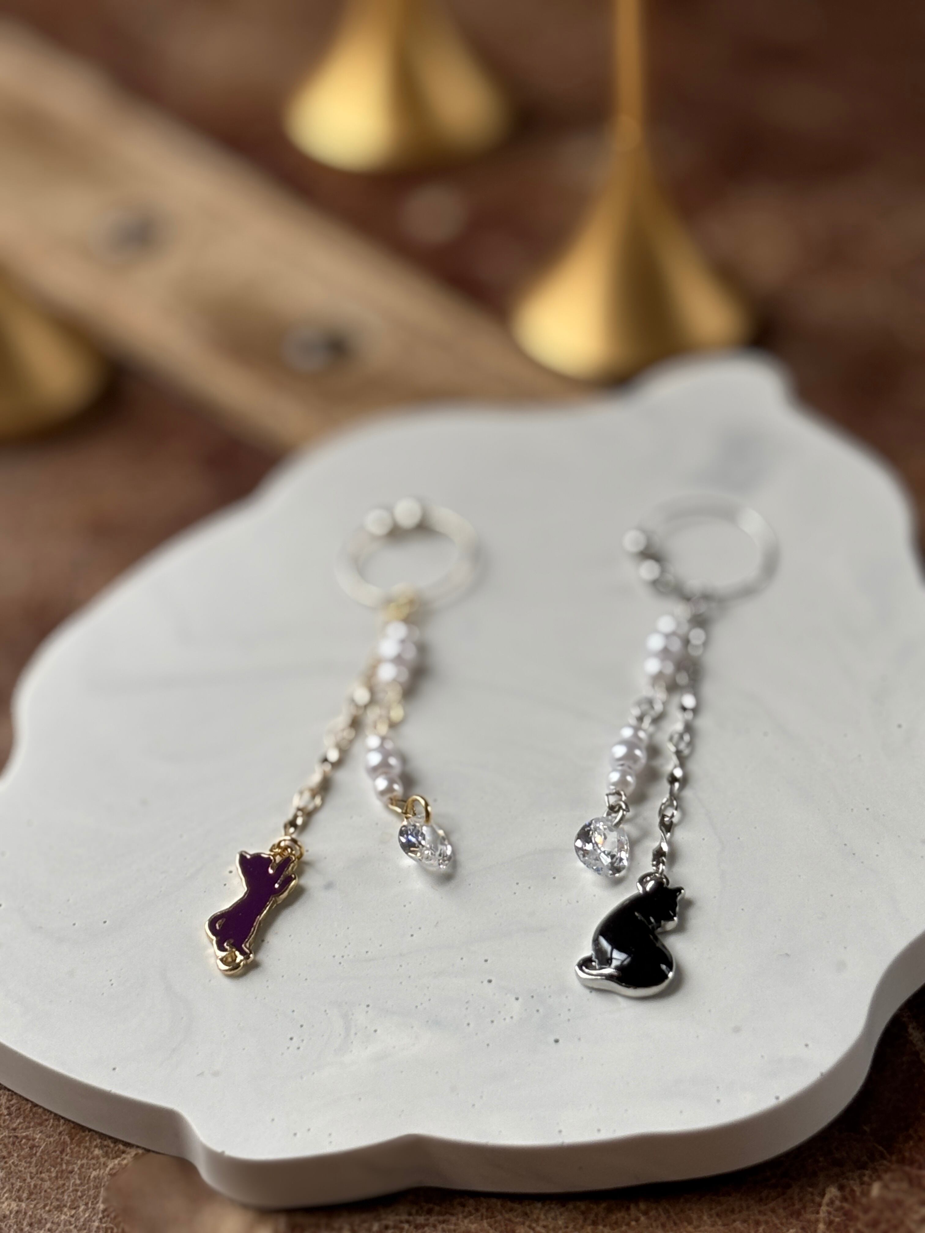 黒猫チャームを合わせたイヤーカフで