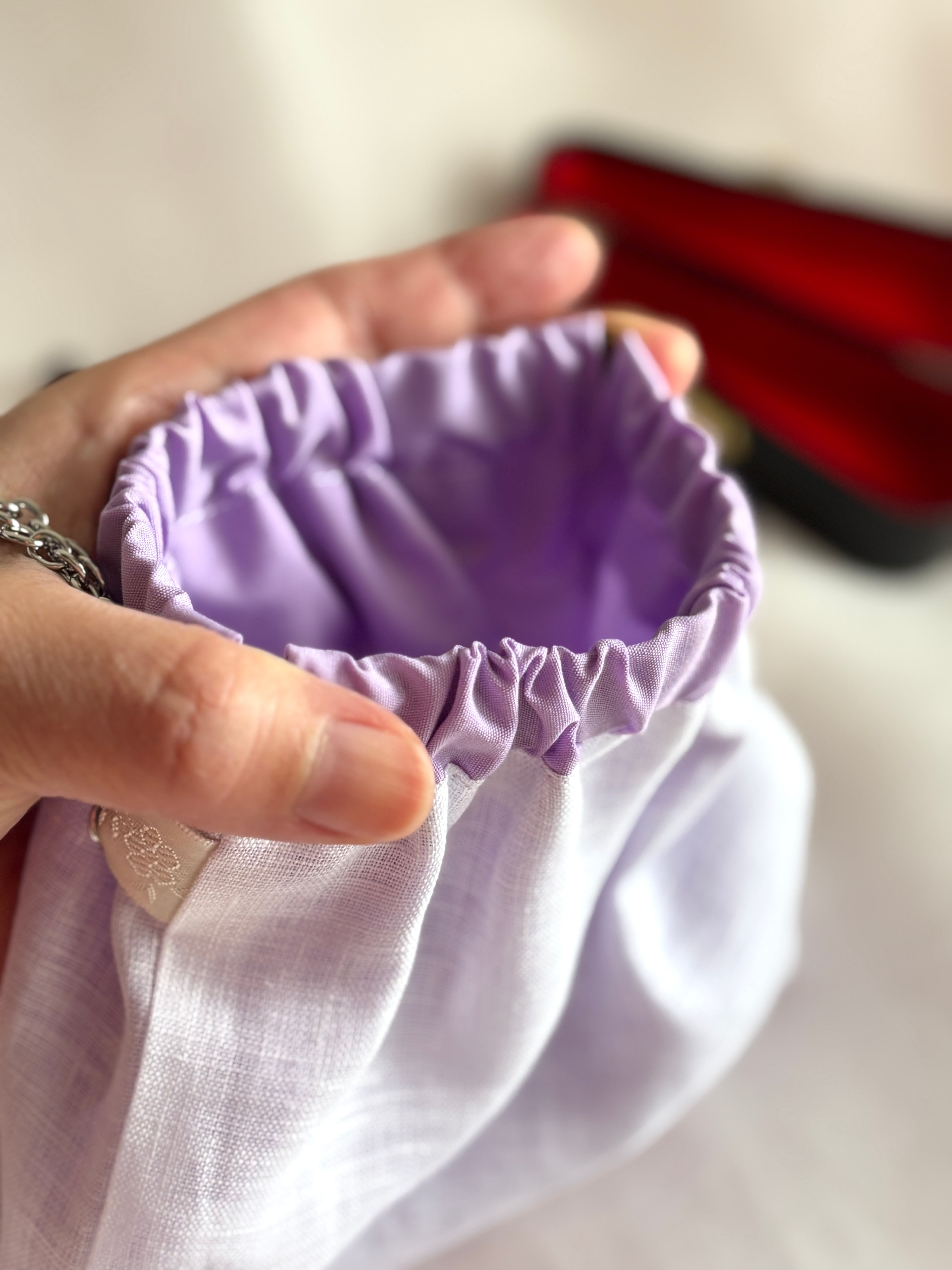 バネ口ポーチ(白×ラベンダー)